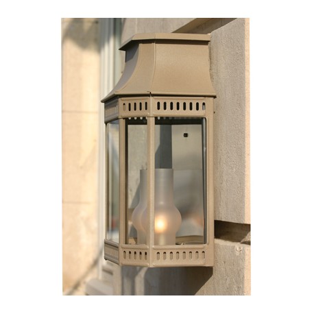 La 1/2 applique murale Louis Philippe 2 de la marque Roger Pradier créateur de luminaires d'extérieurs est fabriquée en aluminium, laiton vernis teinté ou zinc brut (selon la finition choisie). Elle est très résistante et ornera l'entrée de votre maison par exemple.